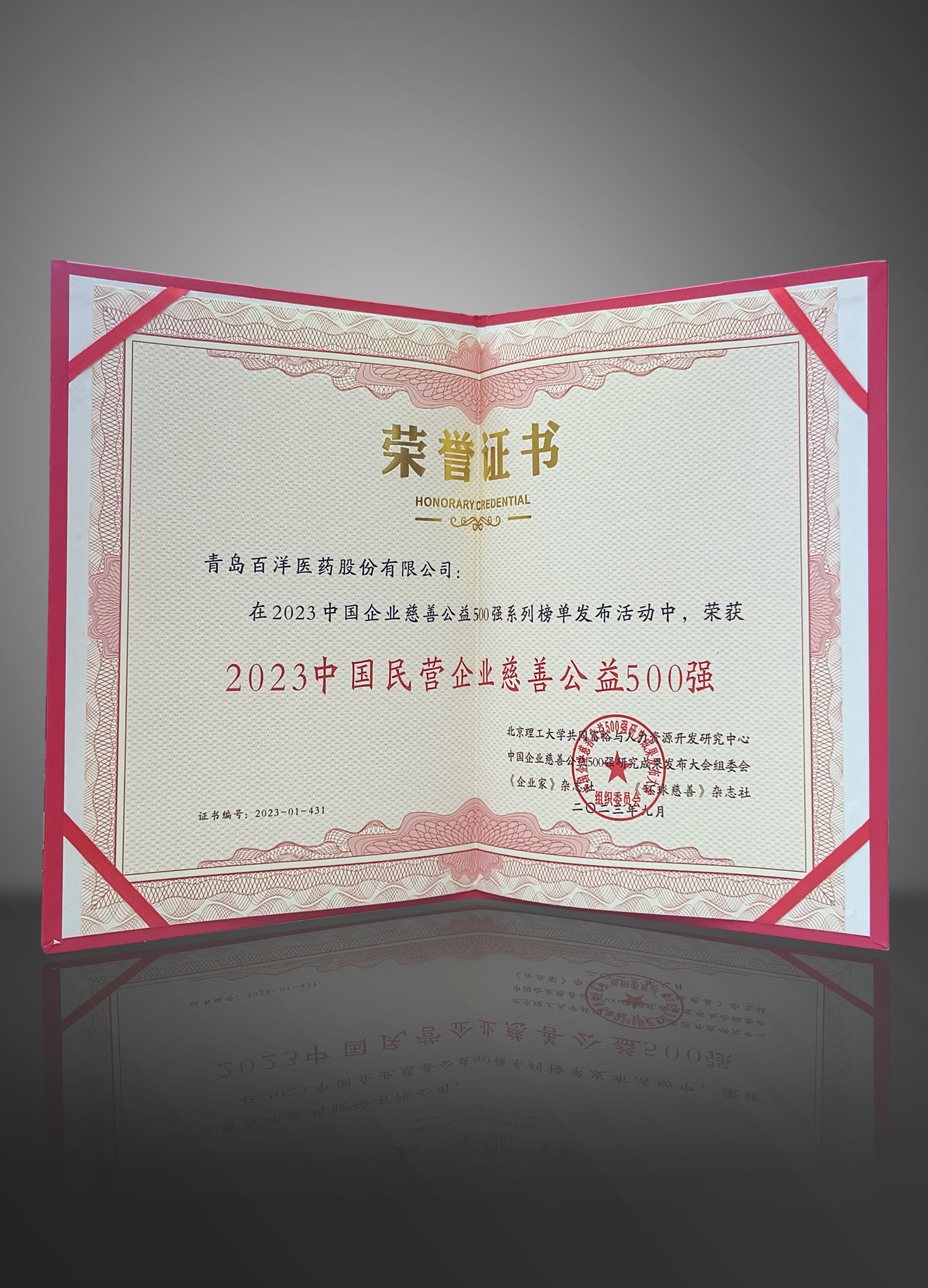 2023年澳洲幸运5 荣获中国民营企业慈善公益500强